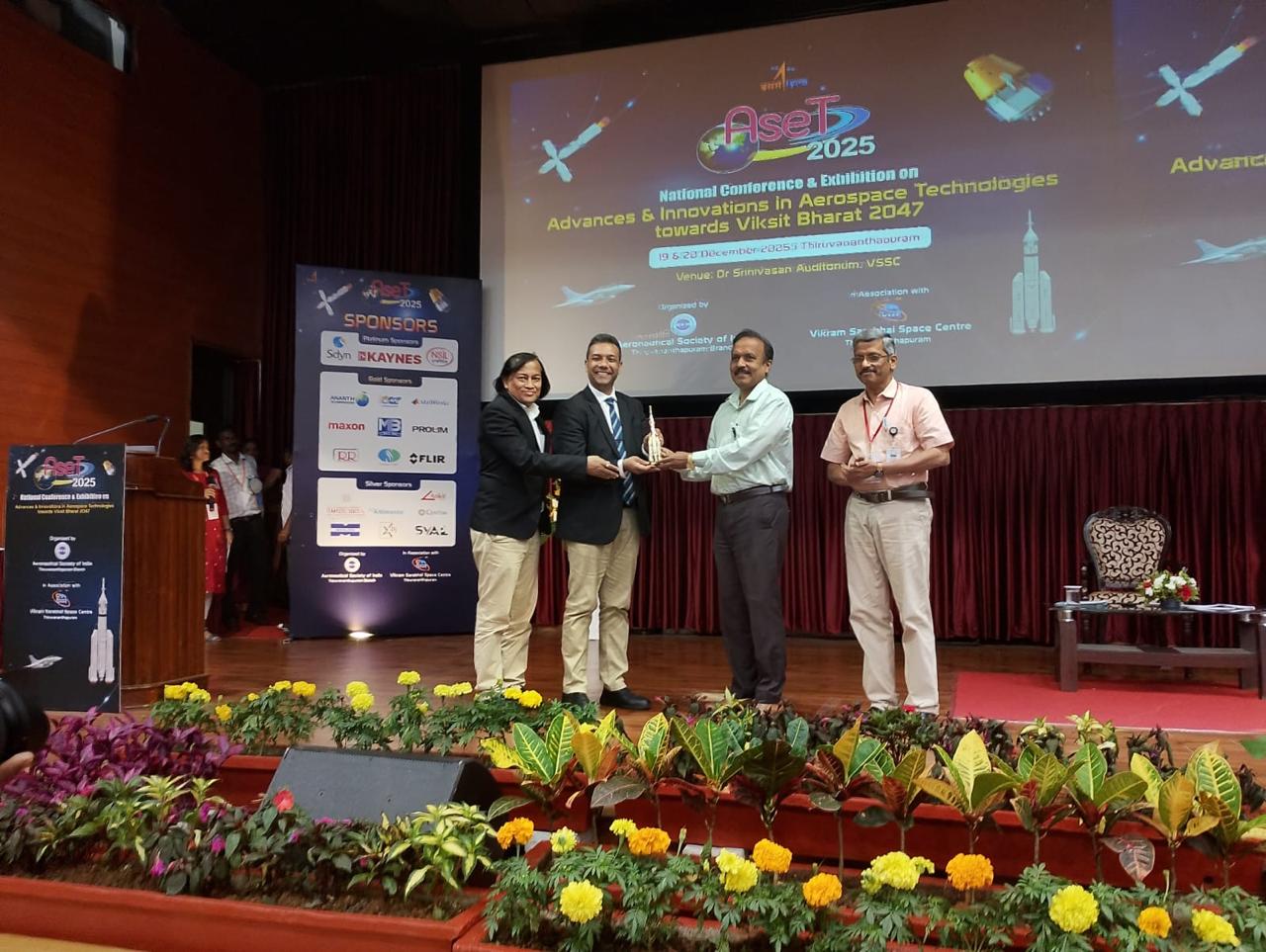 Saraswati Dynamics Pvt. Ltd. participated in the National Conference & Exhibition on Advances & Innovations in Aerospace Technologies towards Viksit Bharat 2047 (ASET 2025), organized by the Aeronautical Society of India (AeSI), Thiruvananthapuram Branch, in association with the Vikram Sarabhai Space Centre (VSSC), ISRO. The event was held on December 19 and 20 at VSSC, Thiruvananthapuram.