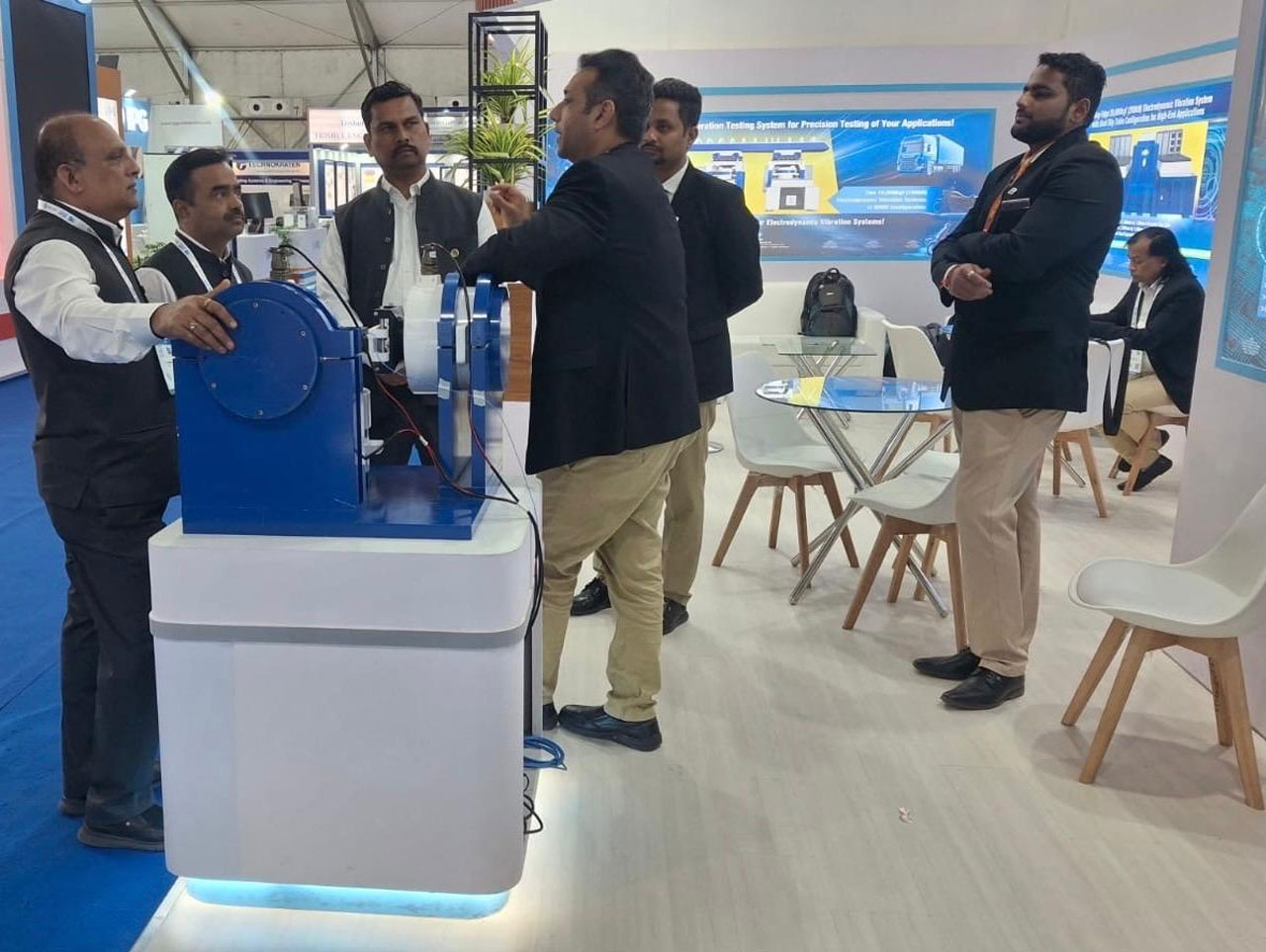 We exhibited at Stalls No. 71 & 72, where we unveiled a live demonstration of a table-top triaxial vibration system for the first time to the automotive industry. The scaled system demonstrated true six-degree-of-freedom motion, offering insights into the architecture, control philosophy, and engineering challenges of full-scale triaxial vibration testing, while highlighting the future direction of vibration qualification technologies in India.